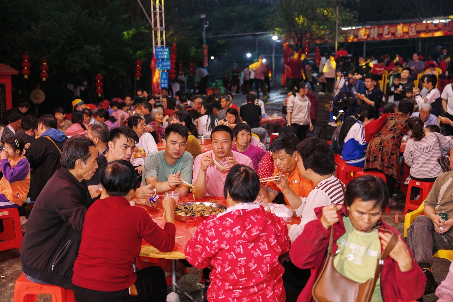 每年的客家围餐流水席约两三百桌,大部分参与的是村民的亲友和外来游客。